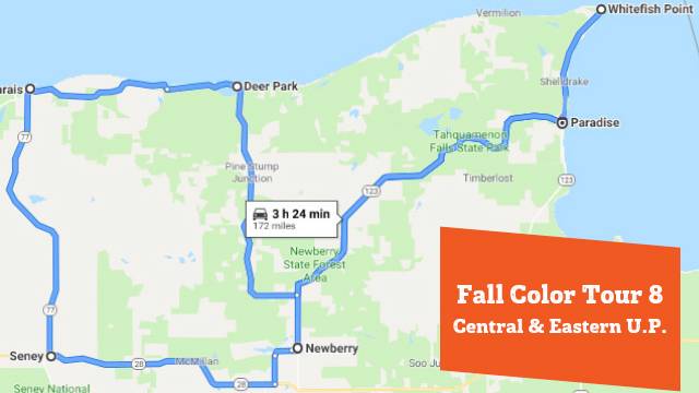 A map of potential fall color tours is available at uptravel.com/recreation/fall-color-routes, and their eighth tour goes right through Newberry.